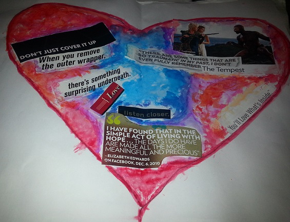I have also been doing more art. I really enjoy taking an hour a week to dedicate my attention and focus to a topic that affects me emotionally. Whether it be peace, violence, silence, war, love, my path, what I strive for, what I fear, what I want, etc. I try to create a representation of my feelings.